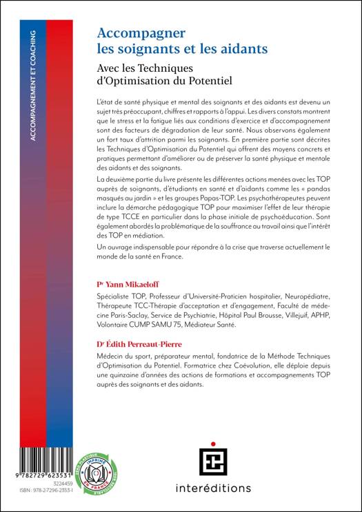 Les Techniques d’Optimisation du Potentiel (TOP) apportent des outils simples et opérationnels dont l’efficacité a été prouvée dans de nombreux secteurs d’activité dont la santé. Les TOP proposent un ensemble de moyens et stratégies pragmatiques et opérationnels permettant à chacun de mobiliser au mieux ses ressources psycho-cognitives et physiques en fonction des exigences de la situation rencontrée. Cette méthode permet donc de s’adapter à toutes les situations en gérant efficacement sa dépense d’énergie dans la durée. Elle est particulièrement intéressante dans les périodes de crise. Après une rapide introduction à la méthode, l'ouvrage donne les clefs pour intégrer les TOP au quotidien des professionnels de santé. Il se concentre plus particulièrement sur chaque secteur et chaque métier dans les chapitres suivants. Un livre incontournable pour prendre soin de soi et donc des autres.
