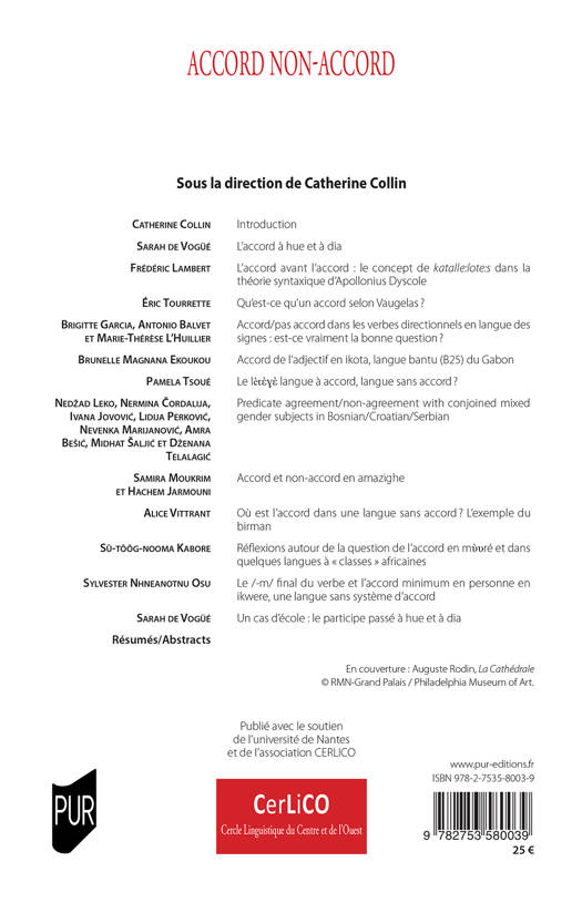 Ce volume dresse un état de l'art dans le domaine de accord-non accord en renouvelant la question qui avait été partiellement soulevée par l'ouvrage intitulé « L'accord » dirigé par Laurent Danon-Boileau et al. publié en 1996 dans la revue Faits de langues, n°8, aux éditions Ophrys (Gap, Paris). Il contribue à enrichir la problématique en observant un panel de différentes langues issues de divers familles, dont certaines sont peu étudiées.
