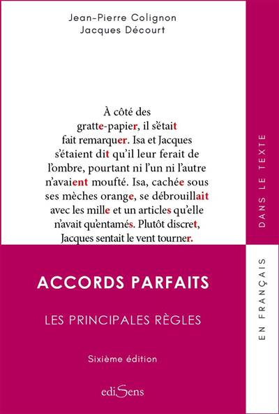 Ah ! ce maudit problème de l'accord des participes passes ! Et les mots composés ? Doit-on écrire des crédits-bails ou des crédits- baux? des grattes-ciels ou des gratte-ciel ? Le principe de cet ouvrage est de rappeler - peut-être de faire connaître - les principales règles d'accord de la langue française. Des explications simples, illustrées d'exemples, permettent de passer en revue toutes les notions essentielles de l'accord du nom, de l'adjectif, du verbe... et du très redouté participe passé. Cette sixième édition répond de façon claire à toutes vos interrogations.