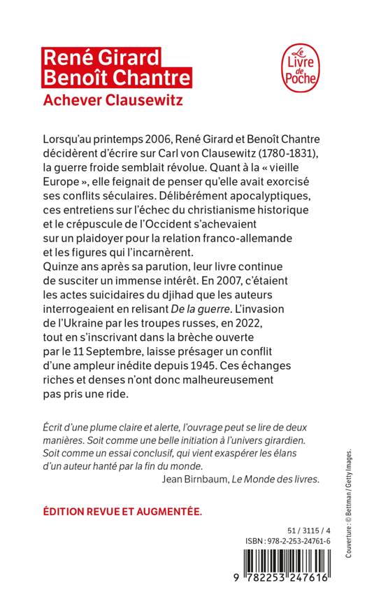 Lorsqu’au printemps 2006, René Girard et Benoît Chantre décidèrent d’écrire sur Carl von Clausewitz (1780-1831), la guerre froide semblait révolue. Quant à la « vieille Europe », elle feignait de penser qu’elle avait exorcisé ses conflits séculaires. Délibérément apocalyptiques, ces entretiens sur l’échec du christianisme historique et le crépuscule de l’Occident s’achevaient sur un plaidoyer pour la relation franco-allemande et les figures qui l’incarnèrent. Quinze ans après sa parution, leurlivre continue de susciter un immense intérêt. En 2007, c’étaient les actes suicidaires du djihad que les auteurs interrogeaient en relisant De la guerre. L’invasion de l’Ukraine par les troupes russes, en 2022, tout en s’inscrivant dans la brèche ouverte par le 11 Septembre, laisse présager un conflit d’une ampleur inédite depuis 1945. Ces échanges riches et denses n’ont donc malheureusement pas pris une ride.
