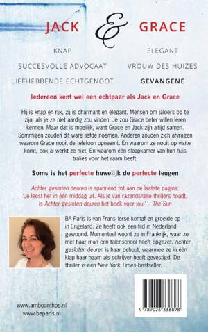 Achter gesloten deuren van B.A. Paris lees je in één ruk uit! In Engeland zijn er meer dan 500.000 exemplaren van verkocht. Achter gesloten deuren is de spannende thriller die iedereen leest!