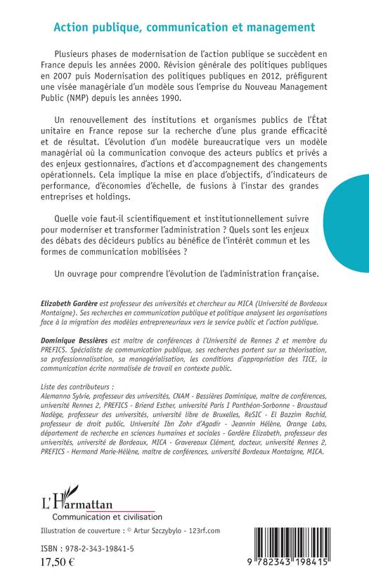Plusieurs phases de modernisation de l'action publique se succèdent en France depuis les années 2000. Révision générale des politiques publiques en 2007 puis Modernisation des politiques publiques en 2012, préfigurent une visée managériale d'un modèle sous l'emprise du Nouveau Management Public (NMP) depuis les années 1990. Un renouvellement des institutions et organismes publics de l'État unitaire en France repose sur la recherche d'une plus grande efficacité et de résultat. L'évolution d'un modèle bureaucratique vers un modèle managérial où la communication convoque des acteurs publics et privés a des enjeux gestionnaires, d'actions et d'accompagnement des changements opérationnels. Cela implique la mise en place d'objectifs, d'indicateurs de performance, d'économies d'échelle, de fusions à l'instar des grandes entreprises et holdings. Quelle voie faut-il suivre pour moderniser et transformer l'administration ? Quels sont les enjeux des débats des décideurs publics ?