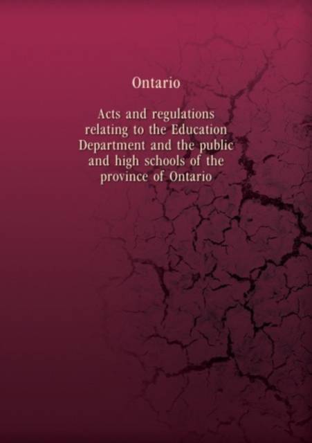 Acts and regulations relating to the Education Department and the public and high schools of the province of Ontario. This book, "Acts and regulations relating to the Education Department and the public and high schools of the province of Ontario. Volume 2", by Ontario, is a replication of a book originally published before 1870. It has been restored by human beings, page by page, so that you may enjoy it in a form as close to the original as possible. This book was created using print-on-demand technology. Thank you for supporting classic literature.
