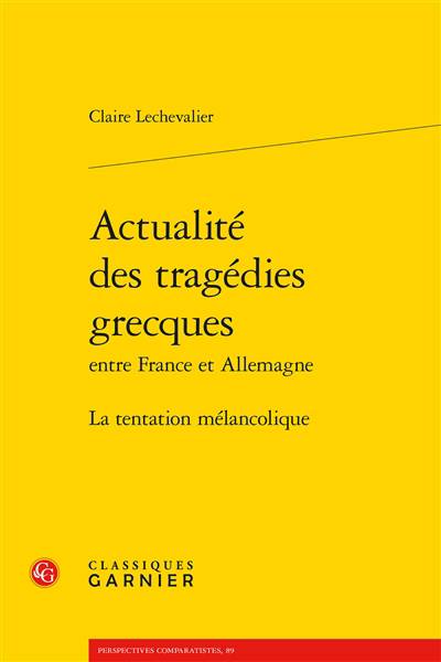 En quoi les tragédies grecques sont-elles actuelles ? La question relève des topoï de l'histoire de la réception. Elle hante les scènes d'aujourd'hui, en Allemagne et en France, dans un dialogue complexe et fécond, héritier de plus de deux siècles de rivalités et de fascinations philologiques, universitaires et théâtrales. En reconstituant l'histoire des interprétations contemporaines (1974-2008), de la traduction à la mise en scène et à la réécriture, le présent ouvrage tente de comprendre comment le théâtre antique est sans cesse reconstruit comme objet de culture(s), entre tentation mélancolique - fantasme d'une origine perdue - et confrontation concrète de la lecture historique des oeuvres avec le présent des formes scéniques.