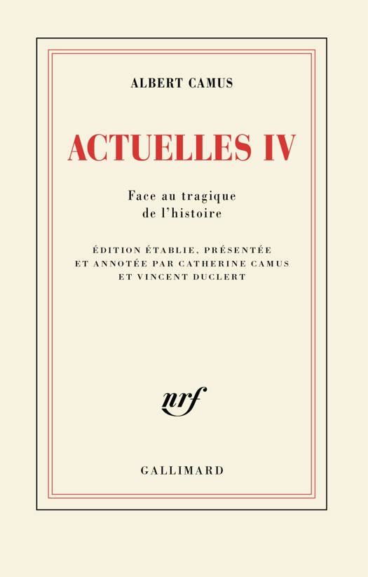 Le 3 janvier 1960, quittant le Luberon, pour ne plus y revenir - il allait trouver la mort sur la route de Paris -, Albert Camus laissait à Lourmarin le plan d'un recueil d'écrits politiques et intellectuels. Un "Actuelles IV" qui devait succéder aux trois premiers déjà publiés. Et qui ne vit jamais le jour. Trente ans après la révélation du Premier Homme, en 1994, paraît ce dernier livre d'Albert Camus, ramenant au présent des actes et une pensée de la résistance à l'histoire tragique, faisant de son auteur toujours notre contemporain. Actuelles IV développe des thèmes et des combats aussi marquants à l'époque qu'aujourd'hui décisifs : la liberté défiant la tyrannie politique - Franco en Espagne, la Russie soviétique en Hongrie -, la lutte contre la peine de mort et la violence extrême dans le monde, l'espoir d'une société plus humaine et plus juste, au plus près des vies et des rêves... Avec Actuelles IV, l'oeuvre de Camus retrouve son unité, dans le souvenir de l'enfance et des jours heureux, entre le courage de l'intellectuel et la beauté d'une écriture toujours vivante. V. D.