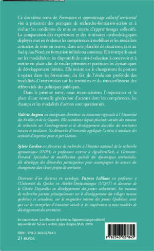 Ce deuxième tome vise à présenter des pratiques de recherche-formation-action et à évaluer les conditions de mise en oeuvre d'apprentissages collectifs. La comparaison des expériences et des itinéraires méthodologiques met en évidence les compétences à mobiliser et les modalités concrètes de mise en oeuvre de ces apprentissages, les modalités et dispositifs de suivi-évaluation à concevoir ainsi que le changement de posture à opérer dans les formations.