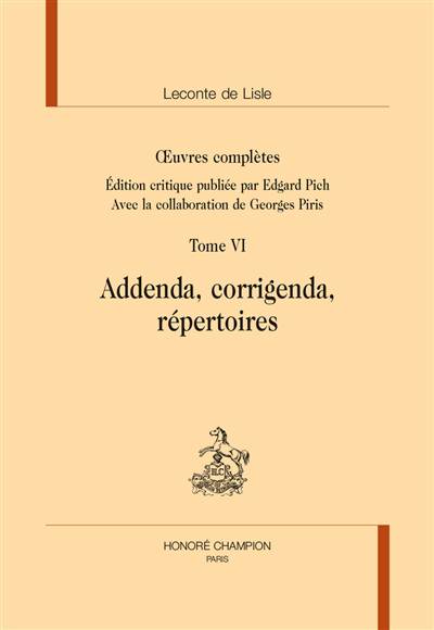 Ce sixième et dernier volume se justifie pour deux raisons.