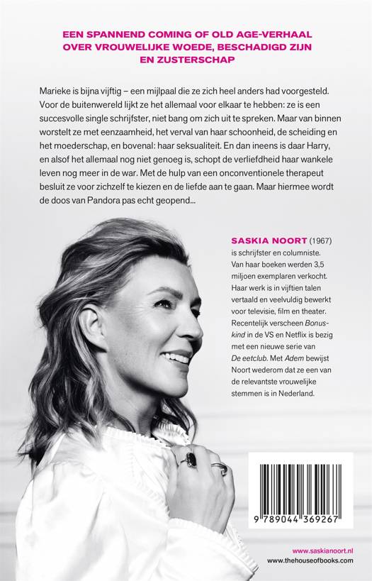 Marieke wordt bijna vijftig - een mijlpaal die ze zich heel anders had voorgesteld. Voor de buitenwereld lijkt ze het allemaal voor elkaar te hebben: ze is een succesvolle single schrijfster, niet bang om zich uit te spreken. Maar van binnen worstelt ze met eenzaamheid, het verval van haar schoonheid, de scheiding en het moederschap, en bovenal: haar seksualiteit. En dan ineens is daar Harry, en alsof het allemaal nog niet genoeg is, schopt de verliefdheid haar wankele leven nog meer in de war. Met de hulp van een onconventionele therapeut besluit ze voor zichzelf te kiezen en de liefde aan te gaan. Maar hiermee wordt de doos van Pandora pas echt geopend...