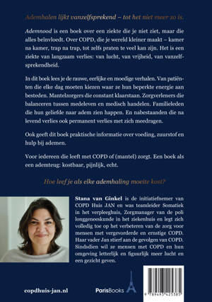 Ademnood is een boek over een ziekte die je niet ziet, maar die alles beïnvloedt. Over COPD, die je wereld kleiner maakt – kamer na kamer, trap na trap, tot zelfs praten te veel kan zijn. Het is een ziekte van langzaam verlies: van lucht, van vrijheid, van vanzelfsprekendheid.