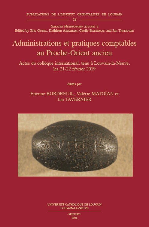 Les articles publies dans ce volume constituent la version ecrite des communications presentees durant le colloque international Administrations et pratiques comptables au Proche-Orient ancien, qui s'est deroule a Louvain-la-Neuve les 21 et 22 fevrier 2019. Differents aspects de l'etude des administrations et des pratiques comptables au Proche-Orient ancien, selon une approche pluri-disciplinaire, constituent le point focal de ce colloque. Ainsi, les sources archeologiques et les donnees textuelles sont mises en regard, se confrontent ou apparaissent complementaires. L'eventail geographique traite recouvre l'Iran, la Mesopotamie, l'Anatolie, le Levant, l'Egypte et la Mediterranee orientale et occidentale. Le spectre chronologique parcouru s'etend du IIIe millenaire av. J.-C. a la periode romaine. La problematique generale du colloque et, logiquement, des actes, s'articule autour de quatre grands themes: produits, contenants et stockage; les poids, entre sources ecrites et donnees archeologiques; administrations, dieux et capitales; pratiques administratives et comptables au travers des textes administratifs.