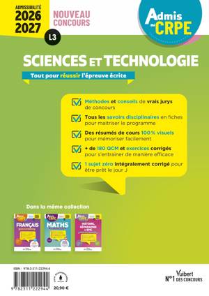 Admis au CRPE 2026-2027 - Epreuve écrite d’admissibilité L3 - Sciences et technologie