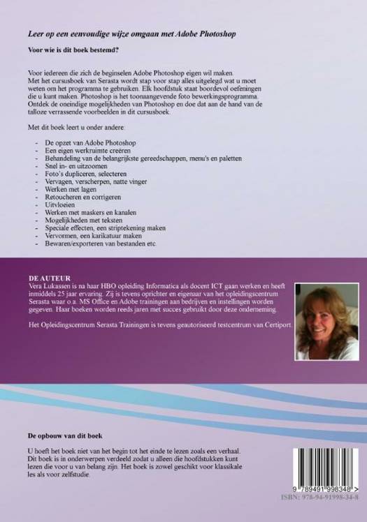 Met het cursusboek van Serasta wordt stap voor stap alles uitgelegd wat u moet weten om het programma te gebruiken. Elk hoofdstuk staat boordevol oefeningen die u kunt maken. Photoshop is het toonaangevende foto bewerkingsprogramma. Ontdek de oneindige mogelijkheden van Photoshop en doe dat aan de hand van de talloze verrassende voorbeelden in dit cursusboek.