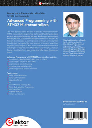 This book is project-based and aims to teach the software tools behind STM32 microcontroller programming. Author Majid Pakdel has developed projects using various different software development environments including Keil MDK, IAR Embedded Workbench, Arduino IDE and MATLAB. Readers should be able to use the projects as they are, or modify them to suit to their own needs. This book is written for students, established engineers, and hobbyists. STM32 microcontroller development boards including the STM32F103 and STM32F407 are used throughout the book. Readers should also find it easy to use other ARM-based development boards.