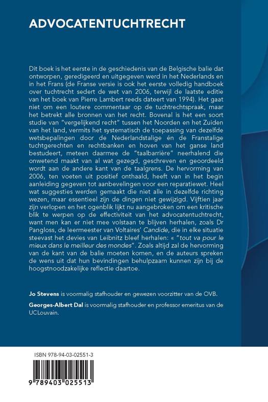 Dit boek omvat niet louter een commentaar op de tuchtrechtspraak, maar het betrekt alle bronnen van het recht. Bovenal is het een soort studie van “vergelijkend recht” tussen het Noorden en het Zuiden van het land, vermits het systematisch de toepassing van dezelfde wetsbepalingen door de Nederlandstalige én de Franstalige tuchtgerechten en rechtbanken en hoven van het ganse land bestudeert, meteen daarmee de “taalbarrière” neerhalend die onwetend maakt van al wat gezegd, geschreven en geoordeeld wordt aan de andere kant van de taalgrens.