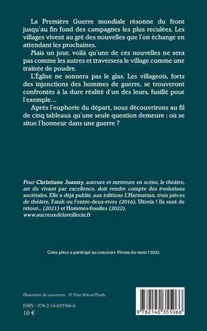 La Première Guerre mondiale résonne du front jusqu'au fin fond des campagnes les plus reculées. Les villages vivent au gré des nouvelles que l'on échange en attendant les prochaines. Mais un jour, voilà qu'une de ces nouvelles ne sera pas comme les autres et traversera le village comme une traînée de poudre. L'Église ne sonnera pas le glas. Les villageois, forts des injonctions des hommes de guerre, se trouveront confrontés à la dure réalité d'un des leurs, fusillé pour l'exemple... Après l'euphorie du départ, nous découvrirons au fil de cinq tableaux qu'une seule question demeure: où se situe l'honneur dans une guerre ?