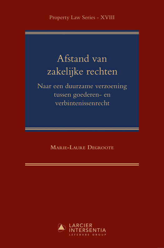 Het boek probeert dit spanningsveld tussen het goederen- en het verbintenissenrecht op duurzame wijze te verzoenen aan de hand van een algemene theorie over de afstand van zakelijke rechten. Het boek is opgedeeld in drie delen. Het eerste deel biedt een globaal rechtsvergelijkend overzicht van de kenmerken, geldigheidsvereisten en rechtsgevolgen die gelden bij de afstand van elk zakelijk recht in het Belgische, Franse, Nederlandse en Zwitserse recht. Aan de hand van enkele bouwstenen wordt afgebakend wat de afstand van een zakelijk recht (niet) is. Het tweede deel bekijkt de bijzonderheden van de afstand per zakelijk recht. Het derde deel behandelt tot slot twee buitenbeentjes: de ‘afstand’ van het lijdend erf (art. 3.122 BW) en de ‘afstand’ van een private kavel in geval van afbraak en heropbouw (art. 3.88, §1, 2° h) BW). Deze gevallen voldoen niet aan de bouwstenen en kwalificeren dus niet als een afstand van een zakelijk recht. Doorheen deze drie delen komen evaluatieve en normatieve analyses aan bod die de aanzet vormen voor de algemene theorie die in het besluit uitgewerkt wordt.