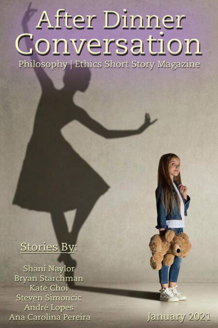 Boomchee: A law student sets her coworker up on a date, only to find out the guy has a mail order secret. His Neighbor's Wife: An unhappy husband kills his neighbor's wife so that his wife will be put to death under "law of vindication." The Waiting Room: A teenager strikes up a conversation in the government waiting rooms with those waiting to get new life dreams assigned to them. Teddy And Roosevelt: Two misfit boys strike up an unlikely friendship in the shadow of President Roosevelt. Believing in Ghosts: A security expert hired to find the flaws in a Presidential candidate's campaign system finds more than she bargained for. Monsters: There are monsters roaming the neighborhood, but sometimes you need to go outside for ice cream.After Dinner Conversation believes humanity is improved by ethics and morals grounded in philosophical truth. Philosophical truth is discovered through intentional reflection and respectful debate. In order to facilitate that process, we have created a growing series of short stories, audio and video podcast discussions, across genres, as accessible examples of abstract ethical and philosophical ideas intended to draw out deeper discussions with friends and family.