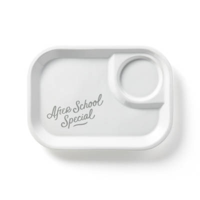 The more you know: This white porcelain tray, inspired by vintage school cafeteria trays, is small in size…but big in personality. Don’t miss the recessed spot for your glass (or enough salsa for approximately two chips).