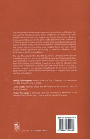 The title Afterschool refers to a film by Antonio Campos, which depicted these new conditions very accurately. In the same way the book wants to take up this challenge and articulates in an affirmative manner what education still could mean in an era after school, and also what images might mean in such an era, both for teachers and education researchers. The contributors to this book respond to this process of digitization and present new and unexpected ways of making use of images in educational practice and research.