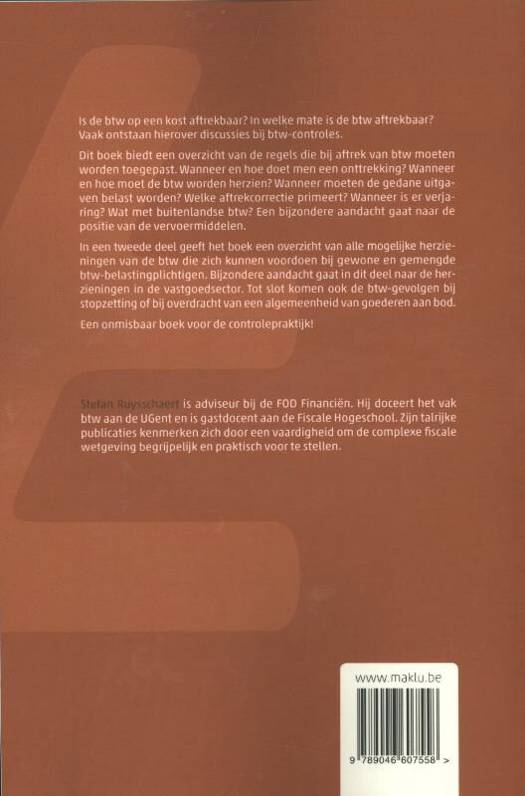 Dit boek biedt een overzicht van de regels die bij aftrek van btw moeten worden toegepast. Wanneer en hoe doet men een onttrekking? Wanneer en hoe moet de btw worden herzien? Wanneer moeten de gedane uitgaven belast worden? Welke aftrekcorrectie primeert? Wanneer is er verjaring? Wat met buitenlandse btw? Een bijzondere aandacht gaat naar de positie van de vervoermiddelen.