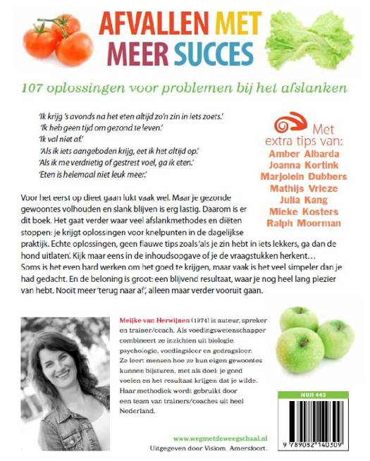 "Ik krijg 's avonds na het eten altijd zo'n zin in iets zoets." "Ik heb geen tijd om gezond te leven." "Ik val niet af." "Als ik iets aangeboden krijg, eet ik het altijd op." "Als ik me verdrietig of gestrest voel, ga ik eten." "Eten is helemaal niet leuk meer." Een must voor iedereen die vastloopt bij het afvallen, of anderen begeleidt die vastlopen!