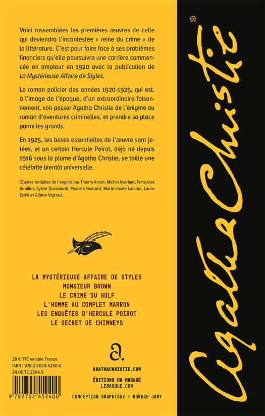 Voici rassemblées les premières oeuvres de celle qui deviendra l’incontestée « reine du crime » de la littérature. C’est pour faire face à ses problèmes financiers qu’elle poursuivra une carrière commencée en amateur en 1920 avec la publication de La Mystérieuse Affaire de Styles.