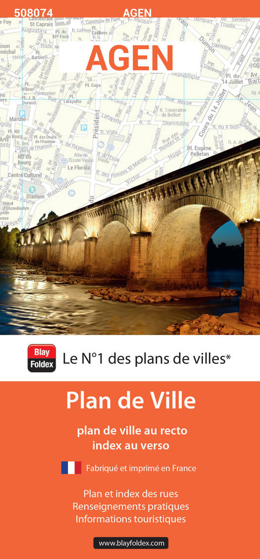 Le plan de la ville d'Agen vous donne tous les détails de la préfecture du Lot-et-Garonne. Agen est une ville forte de son histoire et tournée vers les défis de demain. Agen, capitale de l'Ovalie et du pruneau Bienvenue à Agen, dont le coeur de ville piéton rénové et invite à la promenade. Dès le matin, vous trouverez en abondance, fleurs, fruits, légumes et autres produits du terroir aux étals des marchés fermiers, saveurs mais aussi couleurs offertes aux chalands au gré du shopping, dans les boutiques agenaises. La promenade sera riche d'histoire car si vous le souhaitez l'accompagnateur de l'Office de Tourisme, conteur par la magie des mots, ressuscitera la cité gallo-romaine, la ville médiévale jusqu'aux boulevards du XIXe siècle, en passant par le quartier Renaissance où flâne encore l'esprit de Nostradamus. De nombreux jardins et aménagements pour piétons ou cyclistes embellissent la ville et rendent le séjour en ses murs très agréable.