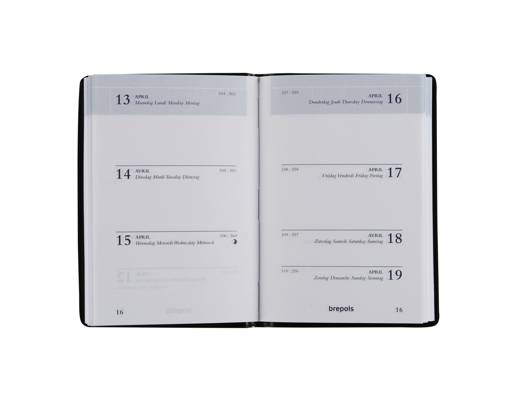 Brepols agenda Armada Lucca 4-talig boekgebonden met 1 week op 2 pagina's op wit papier in een stevige kunstlederen omslag met nerf op formaat 7,1 x10,2 cm.