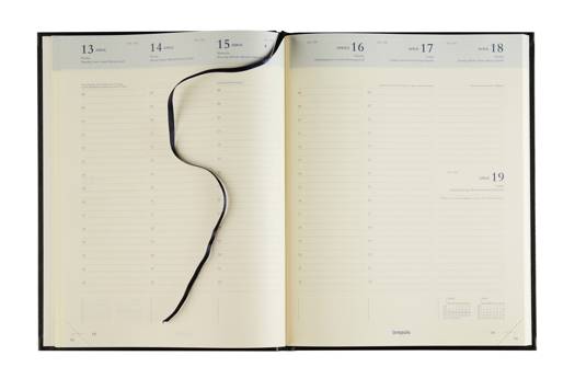 Brepols agenda Concorde Lima 6-talig met 1 week op 2 pagina's en uurindeling (8:00u-22:00u). Boekgebonden met chamois papier, scheurhoekjes en een leeslint in een stevige kunstlederen omslag op formaat 21 x27 cm.