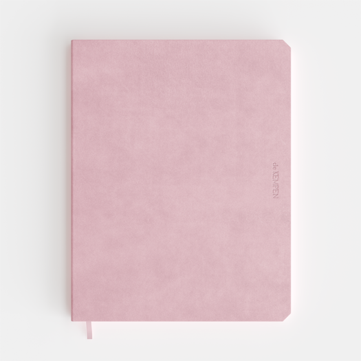 de KEMPEN L Semainier Notes FR weekschema links, notitiepagina rechts, boekgebonden met chamois papier in een soepele omslag, leeslintje, schutblad in marmerpapier, kleur op snee, unieke schuine hoekjes op formaat 17 x 22 cm.
