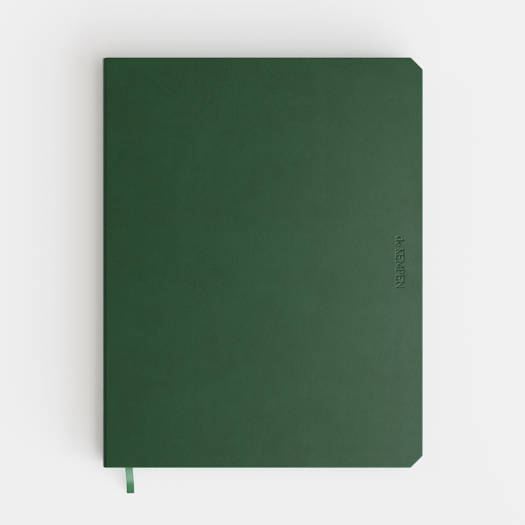 de KEMPEN L Weekly Planner EN 1 week op 2 pagina's, boekgebonden met chamois papier in een soepele omslag, leeslintje, schutblad in marmerpapier, kleur op snee, unieke schuine hoekjes op formaat 17 x 22 cm.
