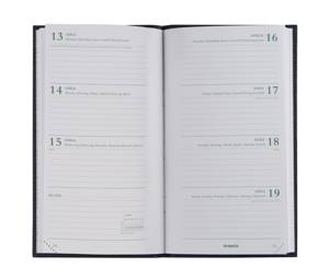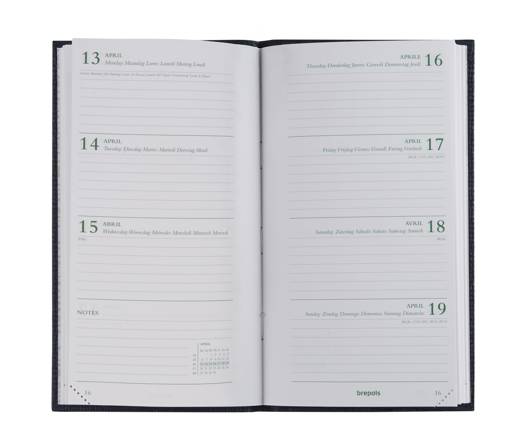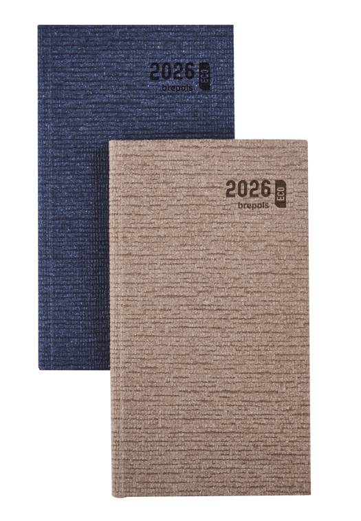 Brepols agenda Ecorama Kazar 6-talig met 1 week op 2 pagina's. Boekgebonden met wit eco papier, een leeslintje en scheurhoekjes in een stevige eco papieren omslag op formaat 9 x 16 cm.