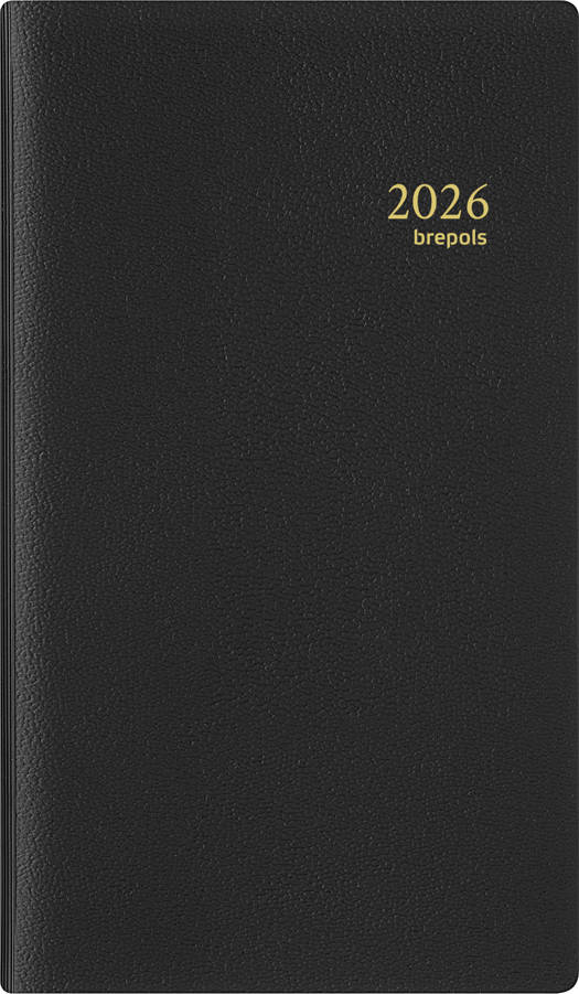 Brepols agenda Notaplan Genova 6-talig spiraalgebonden met 1 week op 2 pagina's op chamois papier met scheurhoekjes in een soepele kunstlederen omslag op formaat 8,9 x 16 cm.