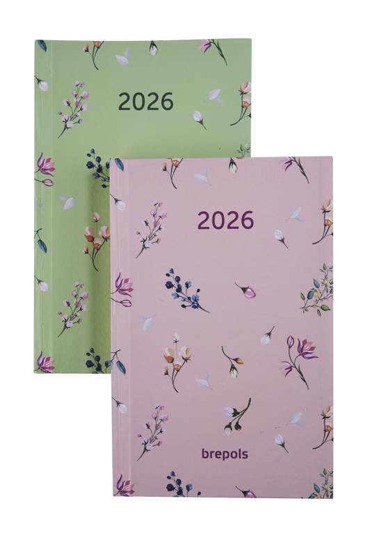 Brepols agenda Blossom pocket 4-talig boekgebonden met 1 week op 2 pagina's op wit papier in een stevige kleurrijke omslag op formaat 15 x 10 cm.