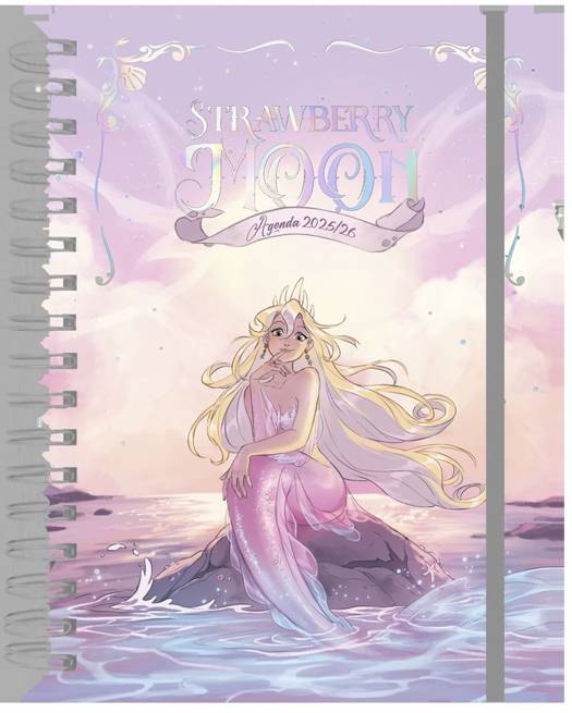 La agenda escolar 2025-2026 de Laia López te transporta al universo de Strawberry Moon.Sumérgete en el maravilloso mundo de Strawberry Moon con esta agenda escolar diseñada por la genial ilustradora de novela gráfica Laia López. Inspirada en su icónico libro del mismo título, esta agenda te acompañará durante todo el curso, combinando organización y magia en cada página.Con una portada espectacular y un interior lleno de los vibrantes y tiernos dibujos de Laia López, esta agenda, ideal para los fans del manga, está pensada para inspirarte. Incluye amplios espacios para anotar tus deberes, planes y recordatorios, su luminosidad alegrará tu día a día. También llevaá4 páginas de espectaculares adhesivosáyáuna página de pósitsápara resaltar los días especiales, como el día Mundial del Cosplay. En el bolsillo doble podrás guardar, entre otras muchas cosas, las entradas del Salón del Manga.áCaracterísticas: Formato: 16,8 x 22,8 cm. Formato interior 16,4 x 22,2 cm. 172 páginas. 1 página con tacos de pósits. 4 páginas de adhesivos. Bolsillo doble. Goma de cierre. Pestañas plastificadas. Esquinas redondeadas. Tapa dura con detalles iridiscentes estampados. Wire-o.