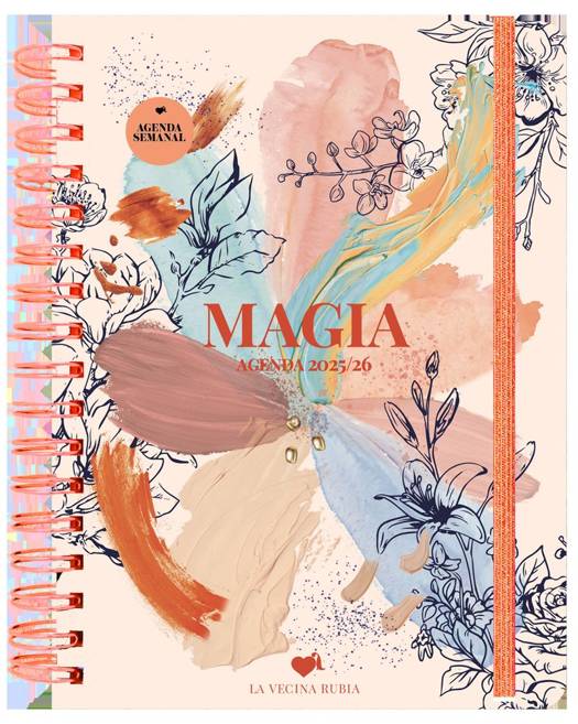 La Vecina Rubia más madura nos trae una agenda con cantos en cobre para el curso 2025-2026Como las vacaciones, las nuevas agendas de La Vecina Rubia siempre tienes ganas de que lleguen. Este año, la escritora anónima más popular de las redes nos regala un volumen que emana magia, sentido del humor, ternura y sensibilidad.La edición de este año estrena unos originales cantos estampados en color cobre, a conjunto con el wire-o y los detalles de la cubierta, porque brillibrilli y zapatos nunca se tienen suficientes. Al abrirla, cada página es un lienzo en el que caben tus anotaciones de trabajo, tus momentos de autocuidado, tus quedadas con amigas, tus citas de salud y todo lo que se le ocurra a tu cabecita.Enmarcadas entre delicados ornamentos florales pintados con estilo acuarela y aguadas de color, esta agenda organizada a semana vista recoge más de 50 frases míticas de La Vecina Rubia, que arrancarán una sonrisa cómplice a sus fans. Completan esta pequeña obra de arte un calendario menstrual muy completo, mood trackers, páginas para colorear, una regla marcapáginas, un bolsillo doble, seis hojas de stickers y una página con tacos de póstits.Llena tu curso de magia y creatividad artística con la agenda de La Vecina Rubia.áCaracterísticas: Formato: 16,8 x 22,8 cm. Formato interior 16,4 x 22,2 cm. 186 páginas. 1 página con tacos de pósits. 6 páginas de adhesivos. Bolsillo doble. Goma de cierre. Pestañas plastificadas. Esquinas redondeadas. Cantos estampados en color cobre. Tapa dura con detalles en cobre. Wire-o.