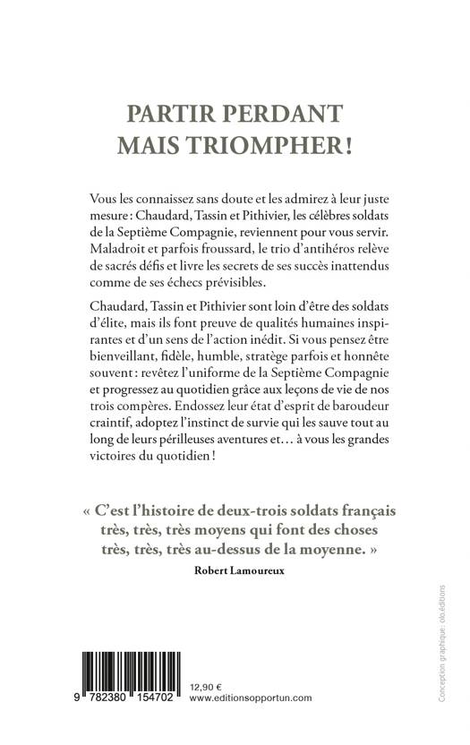 Vous les connaissez sans doute et les admirez à leur juste mesure : Chaudard, Tassin et Pithivier, les célèbres soldats de la Septième Compagnie, reviennent pour vous servir. Maladroit et parfois froussard, le trio d'antihéros relève de sacrés défis et livre les secrets de ses succès inattendus comme de ses échecs prévisibles.