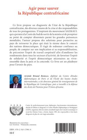 Ce livre propose un diagnostic de l’état de la République centrafricaine, des diverses raisons de la crise et des responsabilités de tous les protagonistes. L’auteur propose des solutions pour permettre au pays de retrouver la place qui était la sienne dans le concert des nations démocratiques. Il s’agit de redonner confiance au peuple, de compter sur son implication et sa responsabilisation, de préconiser l’esprit de travail coopératif afin d’améliorer les rendements dans tous les secteurs d’activité, de favoriser l’esprit de solidarité et l’esprit démocratique nécessaires au vivre-ensemble dans la paix et la concorde. .