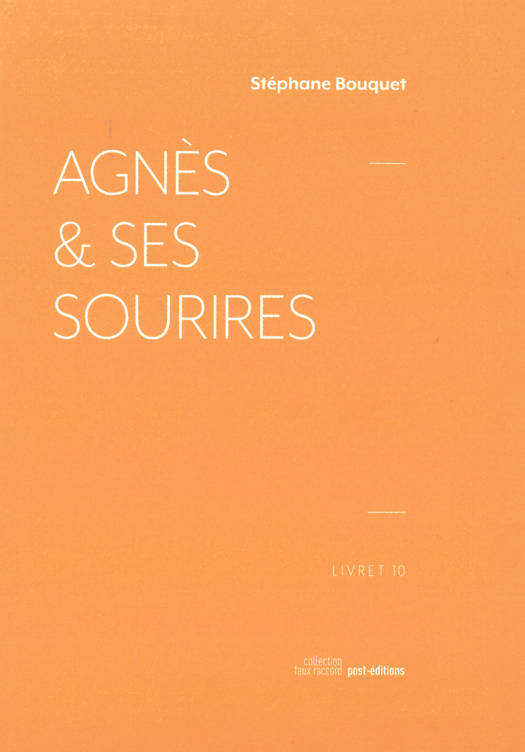Agnès & ses sourires est un récit à la forme singulière. Il suit la logique du dossier de demande d’aide à l’écriture, imposée par l’industrie du cinéma : synopsis, traitement, description des personnages, note d’intention. L’histoire est racontée au rythme de ces différents formats d’écriture fonctionnelle qui servent à donner une image du film à venir. Des coulisses du cinéma émerge une structure poétique et narrative en spirale, faite de répétitions et d’amplification, de détours musicaux et de durées dilatée, venant contrecarrer et confirmer la trajectoire tant implacable qu’annoncée de la mort d’Agnès, personnage principal du récit et sœur du réalisateur. Agnès & ses sourire est avant tout un scénario de mélodrame, mais aussi un écrit conceptuel, une réflexion métaphysique sur l’amour et le langage, un essai littéraire et émotionnel sur le cinéma.