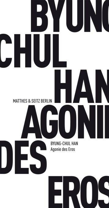 Der Eros gilt dem ›Anderen‹ im emphatischen Sinne, der sich ins Regime des Ich nicht einholen lässt. In der Hölle des Gleichen, der die heutige Gesellschaft immer mehr ähnelt, gibt es daher keine ›erotische Erfahrung‹. Sie setzt die Transzendenz, die radikale Singularität des Anderen voraus. Der heutige Terror der Immanenz, der alles zum Gegenstand der Konsumtion macht, zerstört das erotische ›Begehren‹. Nicht zufällig heißt Sokrates als Geliebter ›atopos‹. Der Andere, den ich begehre und der mich fasziniert, ist ortlos. Er entzieht sich der Sprache des Gleichen. Es ist ein Kennzeichen der immer narzisstischer werdenden Gesellschaft von heute, dass der ›Andere‹ verschwindet – fatalerweise unbemerkt. Die Müdigkeitsgesellschaft, in der man erschöpft von sich selbst ist, ohne sich zum ›Anderen‹ hin befreien zu können, ist eine Gesellschaft ohne Eros.