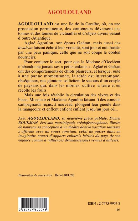 AGOULOULAND est une île de la Caraïbe, où, en une procession permanente, des conteneurs déversent des tonnes de victuailles et d'objets divers venant d'outre-Atlantique. Aglaé Agoulou, son époux Gaétan, mais aussi des bwabwa faisant écho à leur voracité, sont jour et nuit hantés par une panique, celle que ne soit coupé le cordon nourricier.
