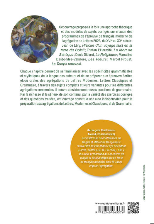 Chaque chapitre permet de se familiariser avec les spécificités grammaticales et stylistiques de la langue des auteurs et de se préparer aux épreuves écrites et/ou orales des agrégations de Lettres Modernes, Lettres Classiques et Grammaire, à travers des sujets complets et leurs variantes pour les différentes agrégations concernées. Il couvre ainsi de nombreuses questions de grammaire.
