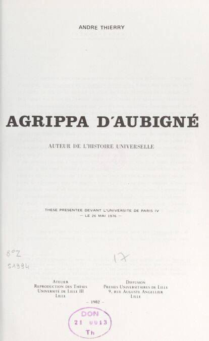 Agrippa d'Aubigné, auteur de "L'histoire universelle" E-BOOK