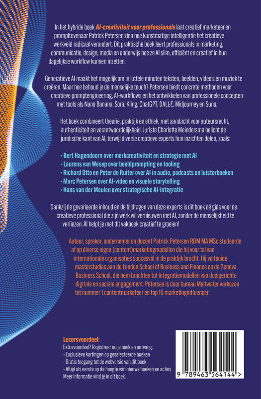 Met AI-creativiteit voor professionals laat Patrick Petersen zien hoe je generatieve tools strategisch inzet binnen je dagelijkse werk. Geen technische handleiding, maar een praktijkgids boordevol voorbeelden, slimme prompts en actuele inzichten. Van beeld en video tot tekst en audio: je ontdekt hoe tools als ChatGPT, DALL·E, Gemini en andere jouw werk creatiever, sneller en slimmer maken.
