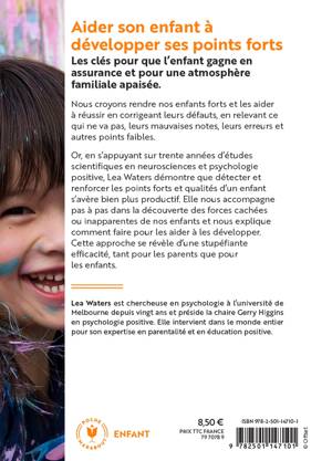 Nous croyons rendre nos enfants forts et les aider à réussir en corrigeant leurs défauts, en relevant ce qui ne va pas, leurs mauvaises notes, leurs erreurs et autres points faibles. Or, en s'appuyant sur trente années d'études scientifiques en neurosciences et psychologie positive, Lea Waters démontre que détecter et renforcer les points forts et qualités d'un enfant s'avère bien plus productif. Elle nous accompagne pas à pas dans la découverte des forces cachées ou inapparentes de nos enfants et nous explique comment faire pour les aider à les développer. Cette approche se révèle d'une stupéfiante efficacité, tant pour les parents que pour les enfants.