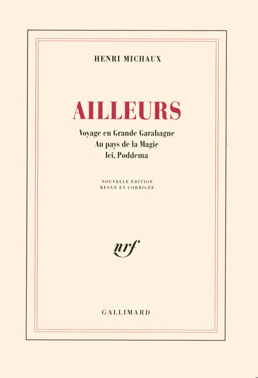 "L'auteur a vécu très souvent ailleurs : deux ans en Garabagne, à peu près autant au pays de la Magie, un peu moins à Poddema. Ou beaucoup plus. Les dates précises manquent. Ces pays ne lui ont pas toujours plu excessivement. Par endroits, il a failli s'y apprivoiser. Pas vraiment. Les pays, on se saurait assez s'en méfier. Il est revenu chez lui après chaque voyage. Il n'a pas une résistance indéfinie. Certains lecteurs ont trouvé ces pays un peu étranges. Cela ne durera pas. Cette impression passe déjà. Il traduit aussi le Monde, celui qui voulait s'en échapper. Qui pourrait échapper ? Le vase est clos. Ces pays, on le constatera, sont en somme parfaitement naturels. On les retrouvera partout bientôt... Naturels comme les plantes, les insectes, naturels comme la faim, l'habitude, l'âge, l'usage, les usages, la présence de l'inconnu tout près du connu. Derrière ce qui est, ce qui a failli être, ce qui tendait à être, menaçait d'être, et qui entre des millions de "possibles" commençait à être, mais n'a pu parfaire son installation..." Henri Michaux.