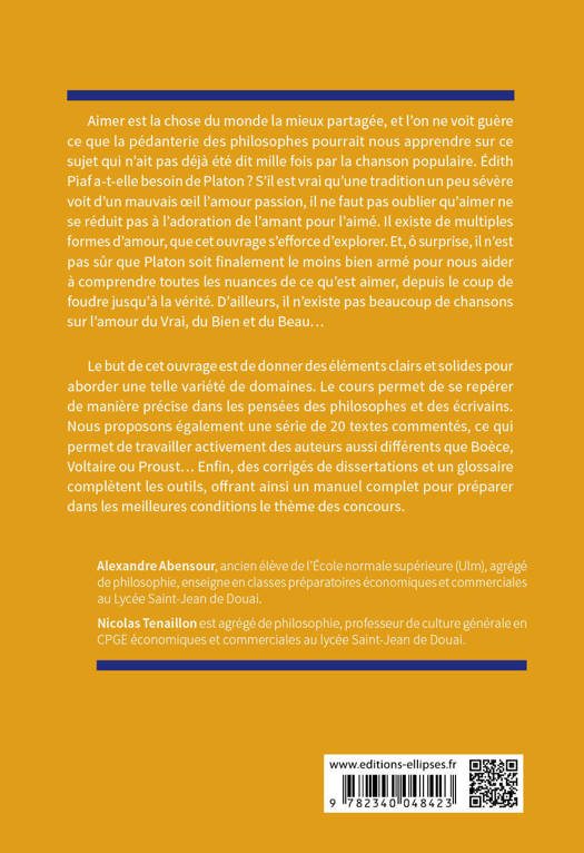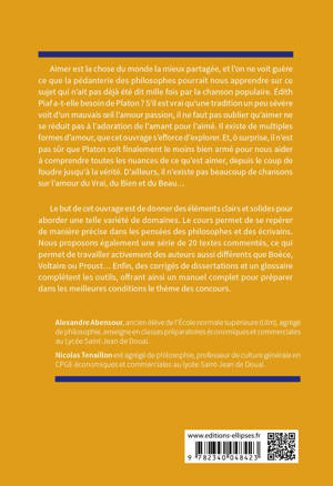 Aimer est la chose du monde la mieux partagée, et l’on ne voit guère ce que la pédanterie des philosophes pourrait nous apprendre sur ce sujet qui n’ait pas déjà été dit mille fois par la chanson populaire. Édith Piaf a-t-elle besoin de Platon ? S’il est vrai qu’une tradition un peu sévère voit d’un mauvais œil l’amour passion, il ne faut pas oublier qu’aimer ne se réduit pas à l’adoration de l’amant pour l’aimé. Il existe de multiples formes d’amour, que cet ouvrage s’efforce d’explorer. Et, ô surprise, il n’est pas sûr que Platon soit finalement le moins bien armé pour nous aider à comprendre toutes les nuances de ce qu’est aimer, depuis le coup de foudre jusqu’à la vérité. D’ailleurs, il n’existe pas beaucoup de chansons sur l’amour du Vrai, du Bien et du Beau…