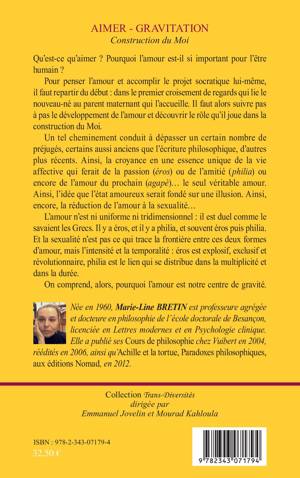 Qu'est-ce qu'aimer ? Pourquoi est-ce si important pour l'être humain ? Pour penser l'amour, il faut repartir du début, et découvrir le rôle qu'il joue dans la construction du moi. Un tel chemin permet de dépasser certains préjugés : l'amour n'est ni uniforme ni tridimensionnel. Selon l'auteur, il y a éros et philia, souvent éros puis philia. Et ce qui trace la frontière entre les deux n'est pas la sexualité mais bien l'intensité et la temporalité. Eros est explosif, exclusif, tandis que philia est le lien qui se distribue dans la multiplicité et la durée.