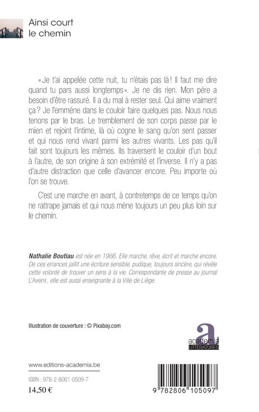 Ainsi court le chemin est un parcours à entreprendre avec son père, une réflexion sur le temps et les traces qu'on laisse derrière soi. Comment capter au mieux l'essentiel d'une vie ? Ici on entre dans la relation pure, sans mot, dans les gestes qui tiennent la vie et entretiennent l'amour. On y parle du regard que l'on peut avoir sur une personne vieillissante et celui qu'on porte sur un nourrisson. C'est un questionnement sur l'existence, à l'aube d'une vie qui commence et au crépuscule d'une autre qui se termine...