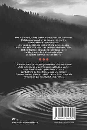 Un thriller addictif, qui plonge le lecteur dans les abîmes de la mémoire et la quête insaisissable de la vérité. Grégoire Godinaud signe ici son 3e roman aux Éditions du Gros Caillou avec une intrigue finement menée, et nous conduit comme à son habitude vers une fin que nul ne peut soupçonner.
